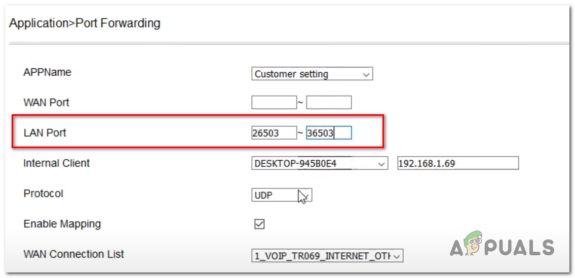 Port forwarding overwatch - Fill the LAN PORT boxes according to the image given below