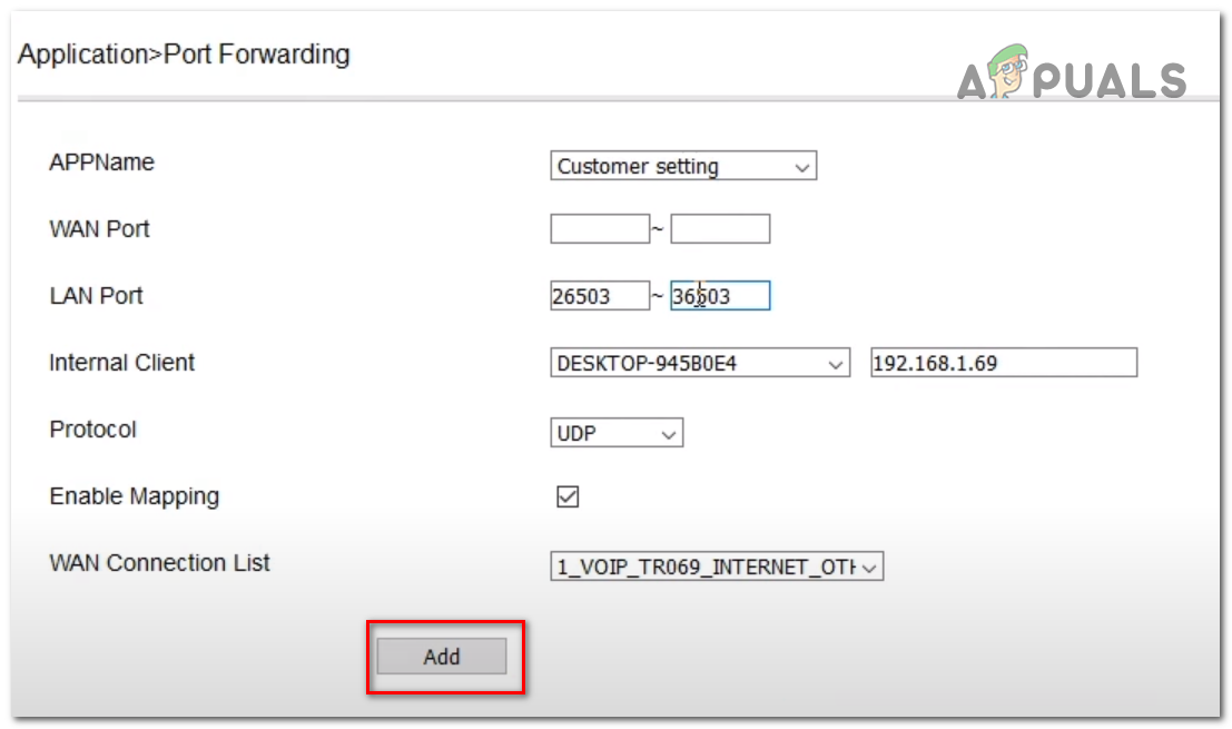 Port forwarding overwatch - Click on ADD to save changes.