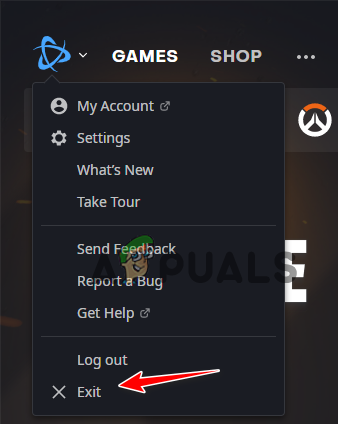 To close the Battle.net launcher, click on the Blizzard icon in the top-left and select the Exit option. After closing the launcher, reopen it and then launch Overwatch 2.