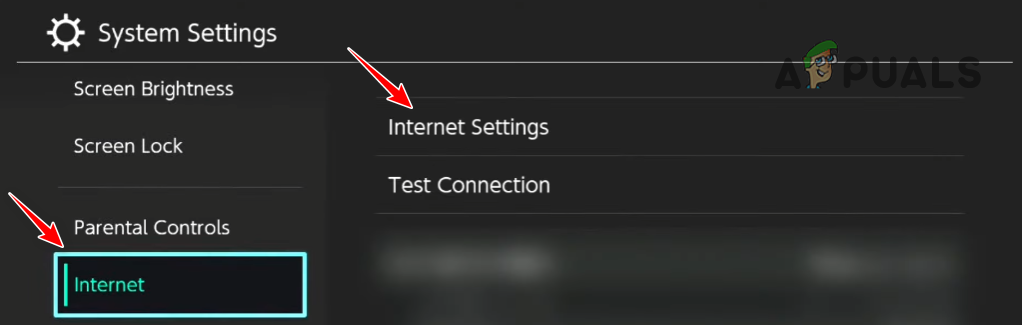 Opening Nintendo Switch System Settings - Scroll down to the Internet section.
