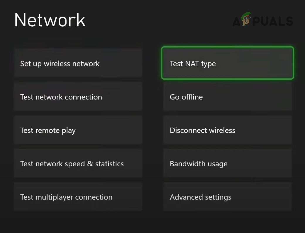 Opening Xbox Series X/S Network Settings - Select the “Test NAT Type” option on the left list.