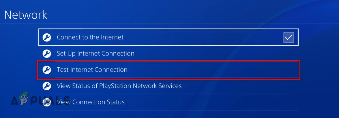 Opening PS4 Network Settings - Select the “Test Internet Connection” option in the Network Settings list.