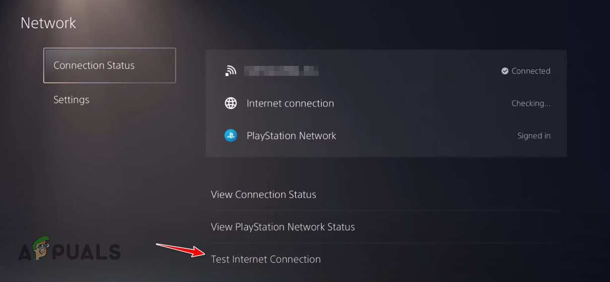 Opening PS5 Settings - Select the “Connection Status” option in the Settings list.