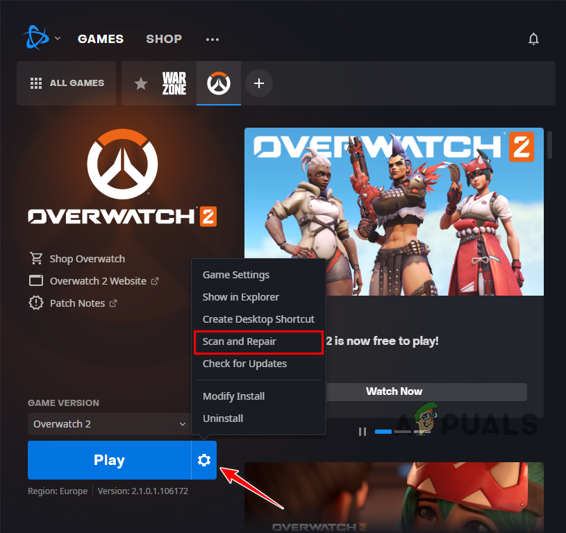 The final solution to this error in Overwatch 2 is to reinstall the game fully. If no other solution has worked, it could mean that there are some heavily corrupted game files that the “Scan and Repair” feature in the Battle.net launcher is overlooking.