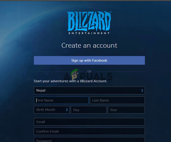 - Select “Create a free Blizzard Account” on the sign-in form.