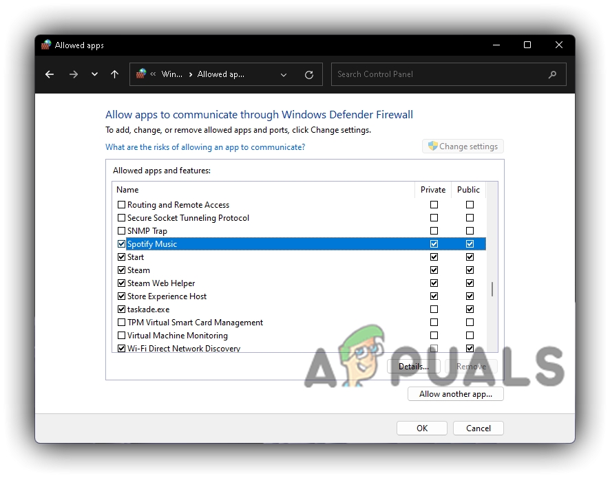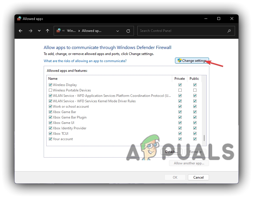 Windows Defender Firewall Change Settings - Navigate to your desired application or game and tick both Private and Public checkboxes