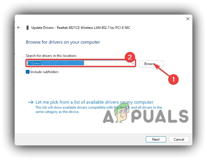 Browse My Computer For Drivers In Device Manager - Click Browse Button, navigate to your Network driver’s downloaded location, and click Next to complete the Installation.