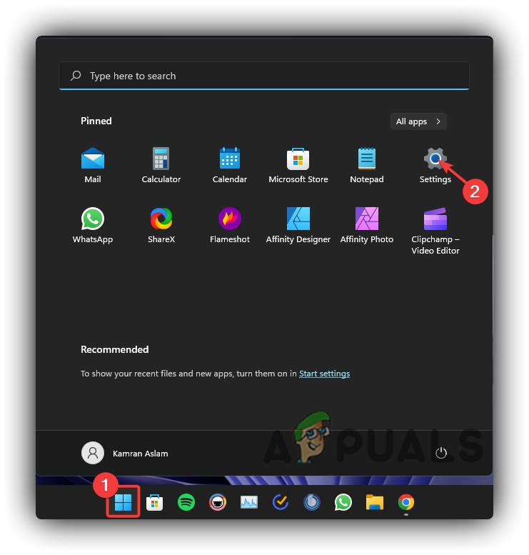 - Open Start Menu and click Settings