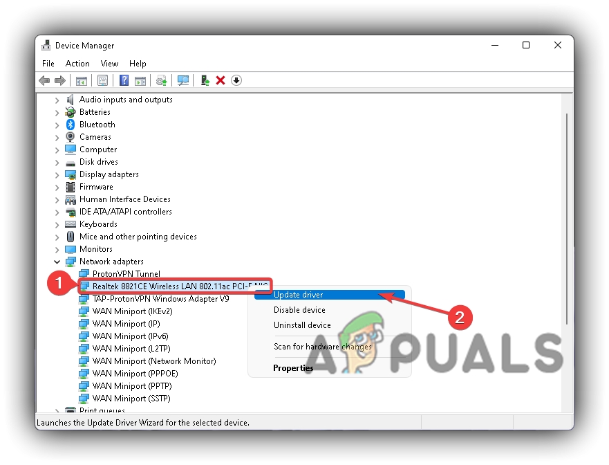 - Right-click on your active network device and select Update Driver