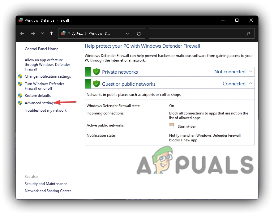 Start Menu To Windows Defender Firewall - Open it and click on Advance Settings