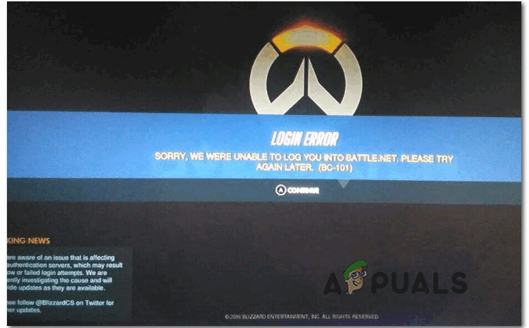 Some Overwatch players are encountering the BC – 101 error when attempting to log in to the game with their account. This error is signaling a failure of the client to connect to the server and is only reported to occur on console (Ps4 and Xbox One).
