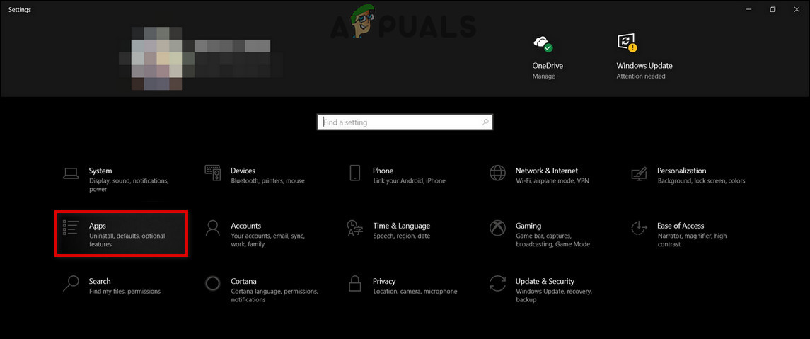 - On the Settings main page click on Apps.