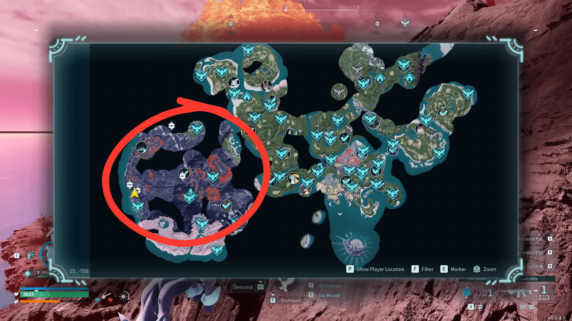Get a Flyer - From here, you are going to head towards the Volcano Biome on the southwest corner of the map.