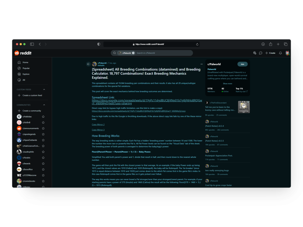 And that’s not all, the world of breeding combos in Palworld is vast and comes with certain exceptions and rules. So, if you want to get a complete overview regarding breeding combos, we highly recommend checking out Blahable’s post on r/Palworld — the first person to figure out this whole thing.