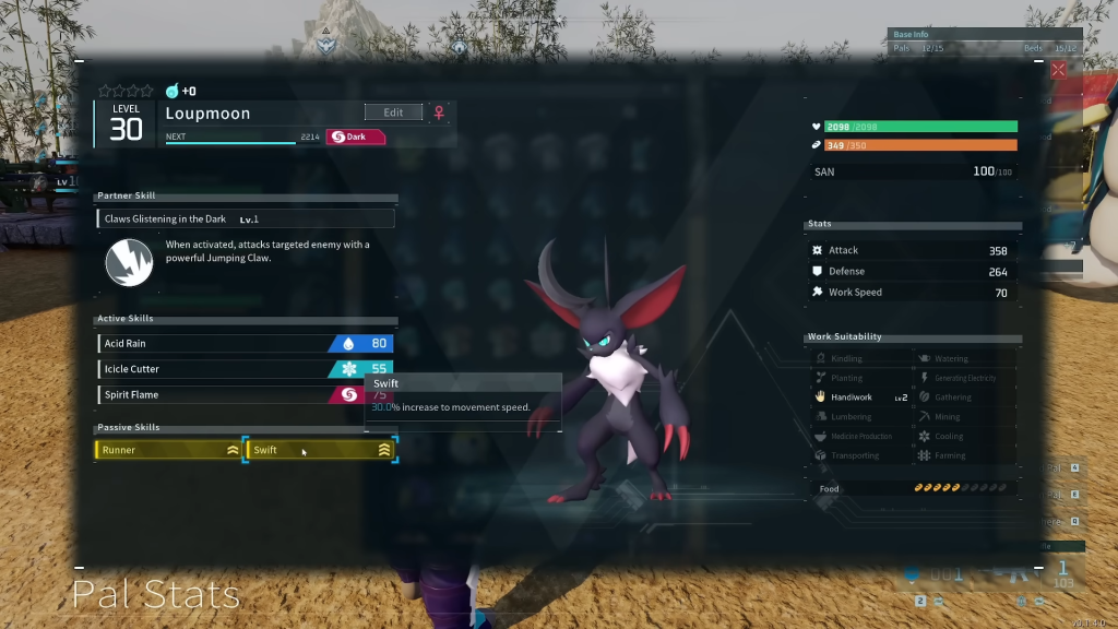 Each Pal has certain passive skills that can provide buffs or debuffs to the player or Pal. When you breed two Pals, their offspring have a chance to inherit some of these skills. For example, if you breed an Eikthyrdeer with the Swift skill and a Fenglope with the Runner skill, the resulting Loupmoon might inherit Swift, Runner, or even both. However, it’s not a straightforward 50-50 split.