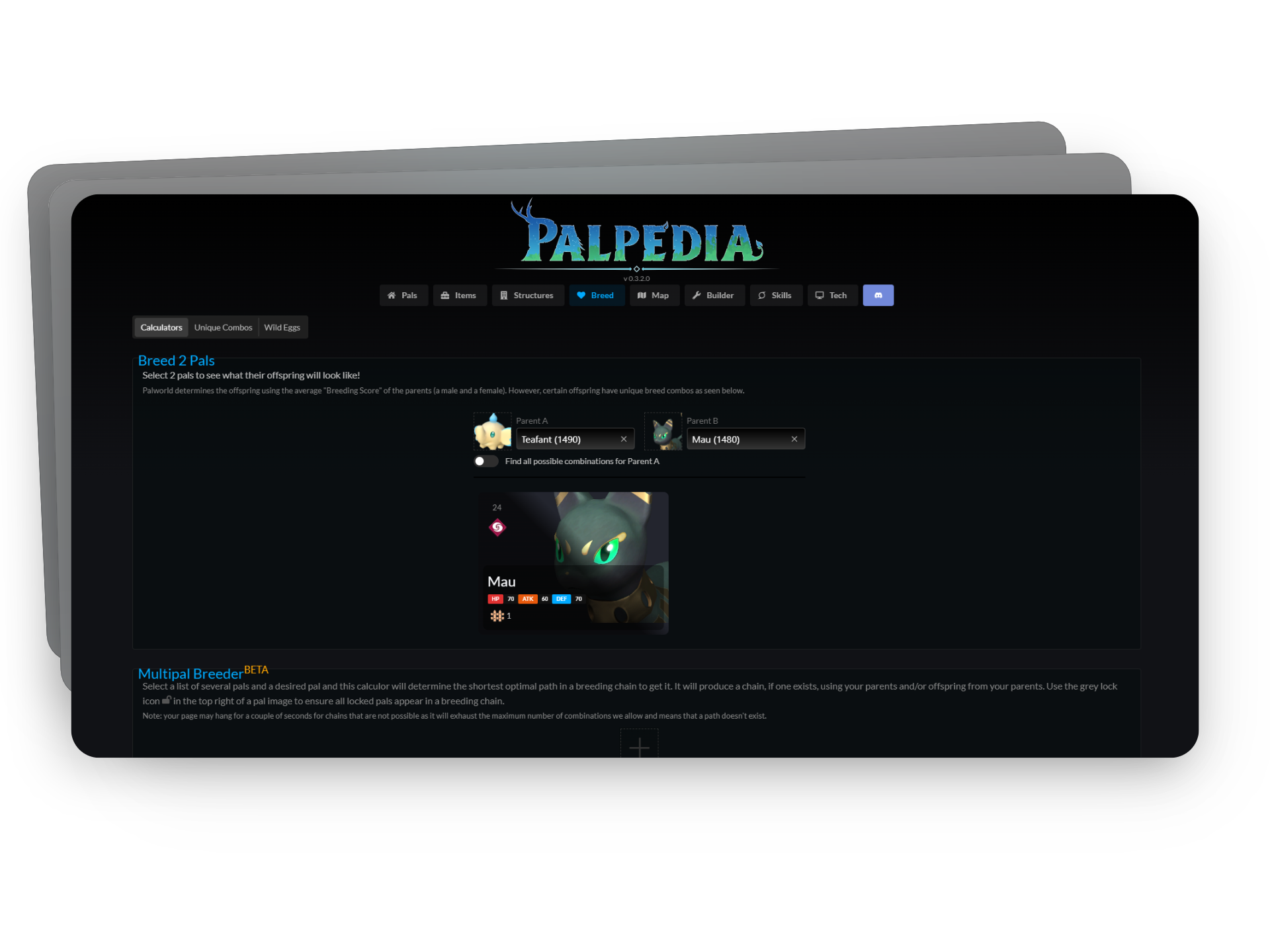 Breeding Calculators allow you to simply select any two Pals and find out what offspring you can get by breeding them. All you have to do is select Parent A and Parent B and the calculator will automatically give you the results. These breeding calculators have several other useful features like Multipal Breeder, Parent Calculator, and more so make sure to thoroughly look at all of them.