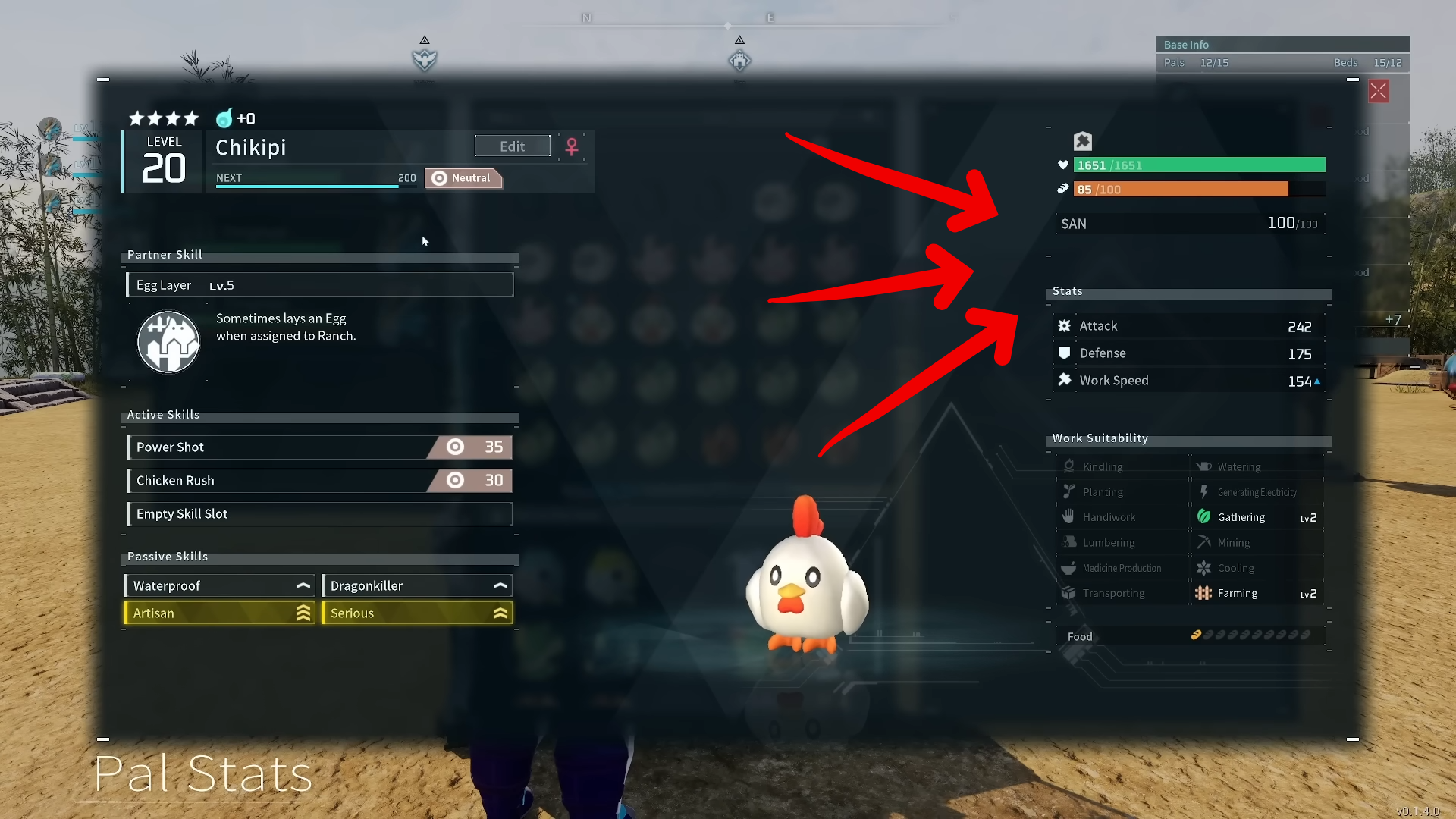 In addition to passive skills, the offspring’s stats, such as HP, Attack, and Defense, are also influenced by their parents’ stats. The stronger the parents, the better the base stats of the child. However, just when you start to get things, there’s an element of randomness and mutations that can introduce new skills or traits that neither parent had, making it difficult to create the perfect pal with the ideal skill set.