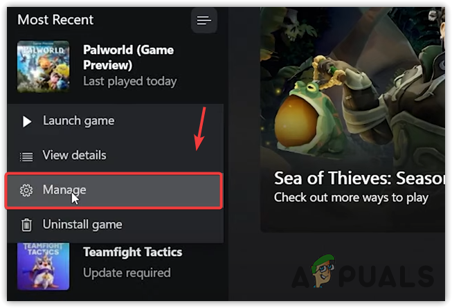 - Right-click on Palworld and select Manage.