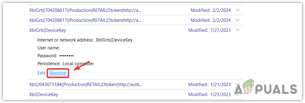 4. Delete XblGrts|DeviceKey from the Windows Credentials Manager