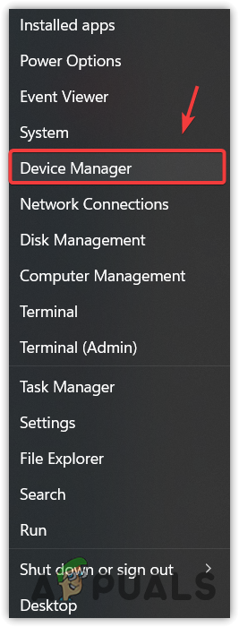 - Right-click on the Start Menu and choose Device Manager.