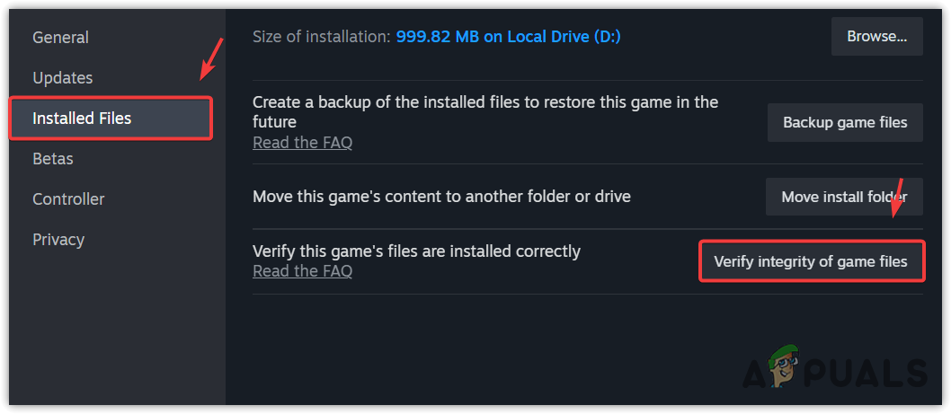 - Select Verify integrity of game files.