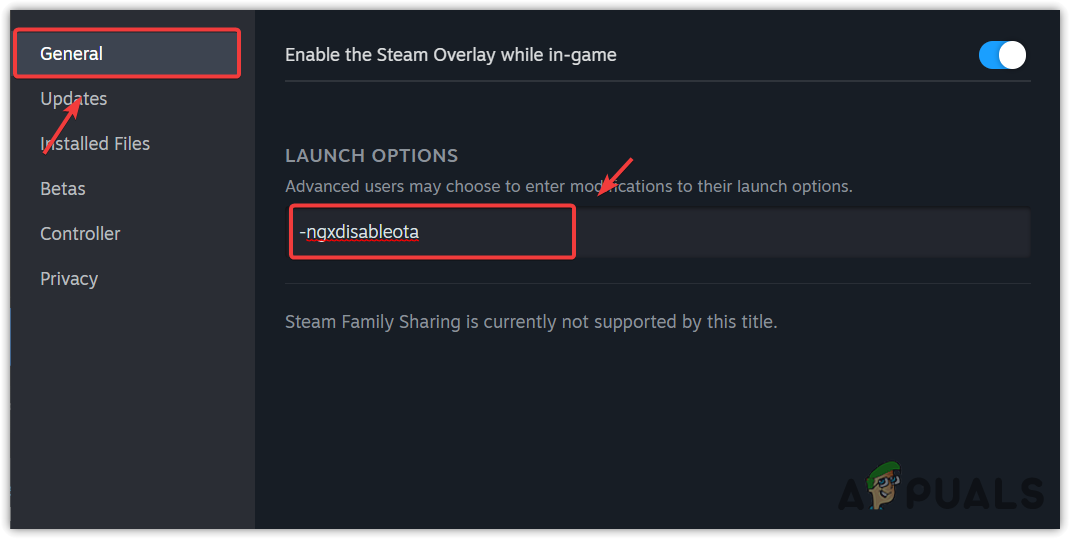 - Enter -ngxdisableota in the launch options field.