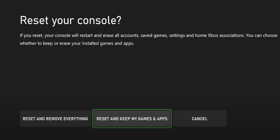 5. Resetting the Console to Repair Corrupt Files (Xbox)