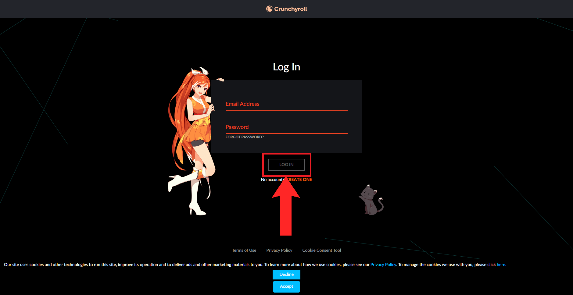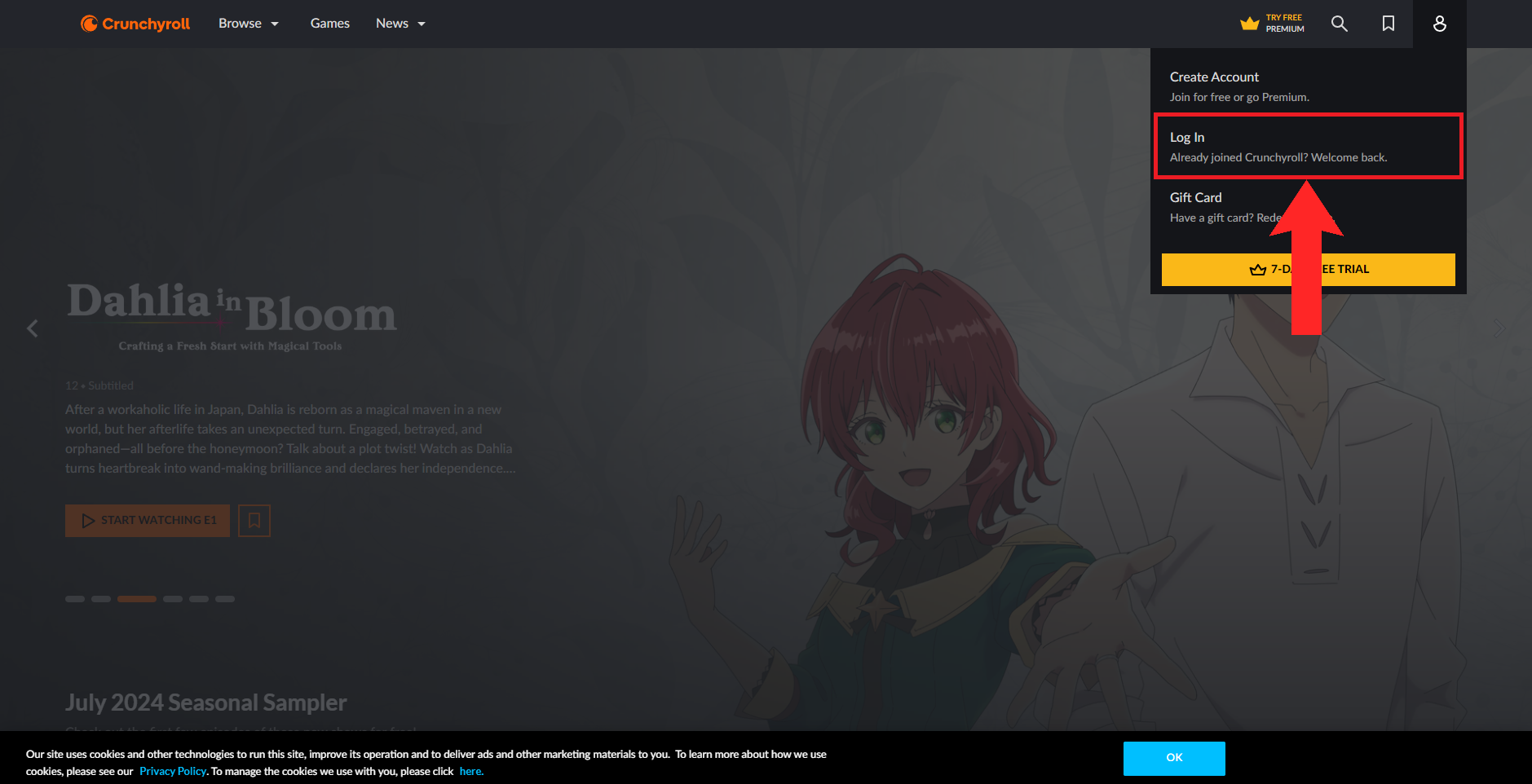 Open up Crunchyroll on your browser - Next, click on the blank profile picture in the top-right corner. Select Log In from the drop-down that appears.