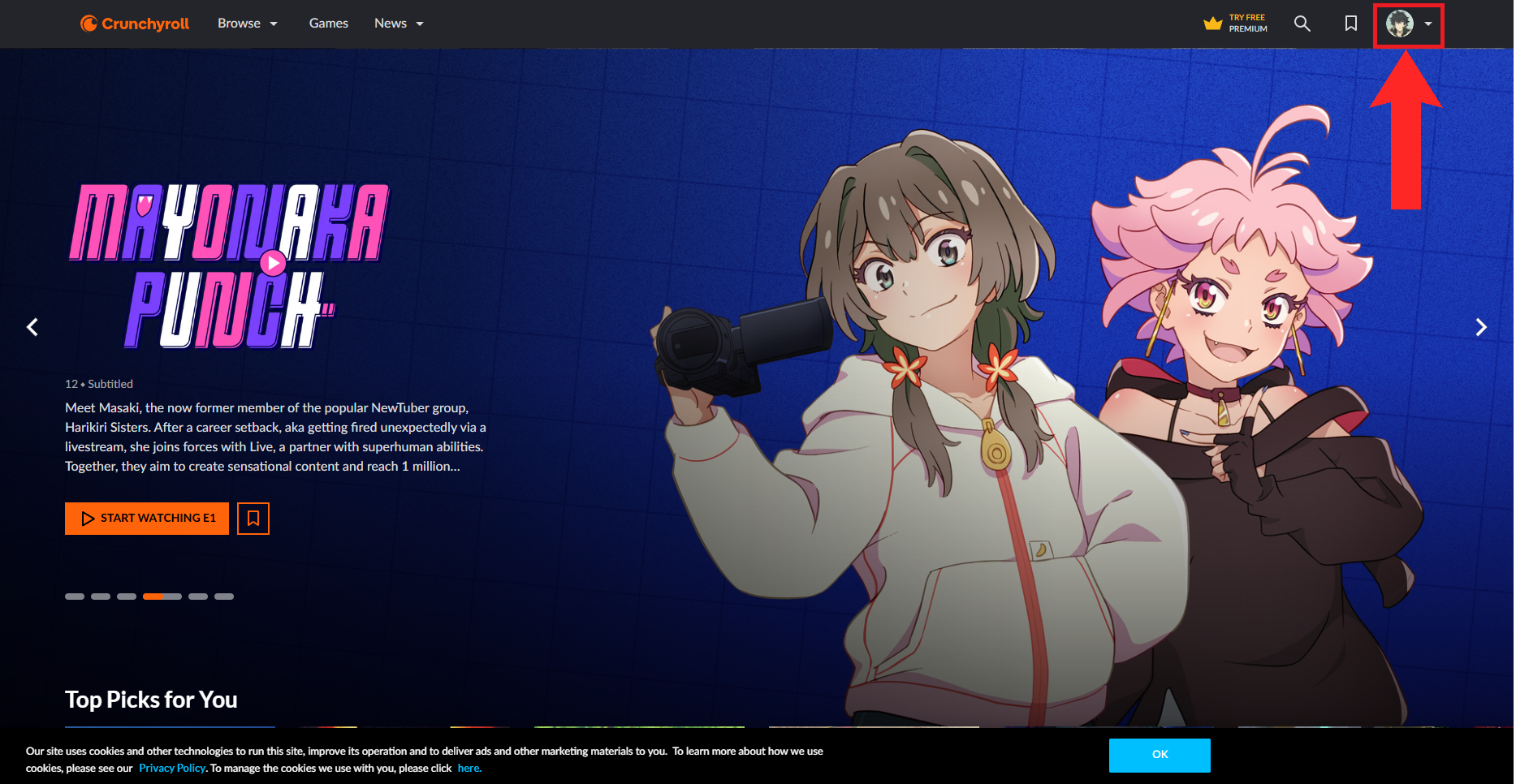 - First off, open up Crunchyroll on your desktop’s browser.