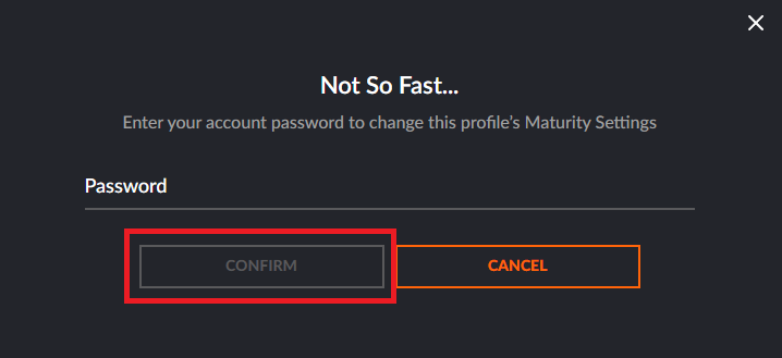 After entering your password, click on “Confirm” - After a few seconds, the Settings page will become accessible once again, and you’ll see that the Mature Video Content switch has been switched off.