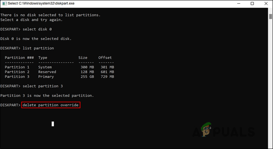 Execute the Select Partition 4 command - Finally, execute the command below to delete the partition: