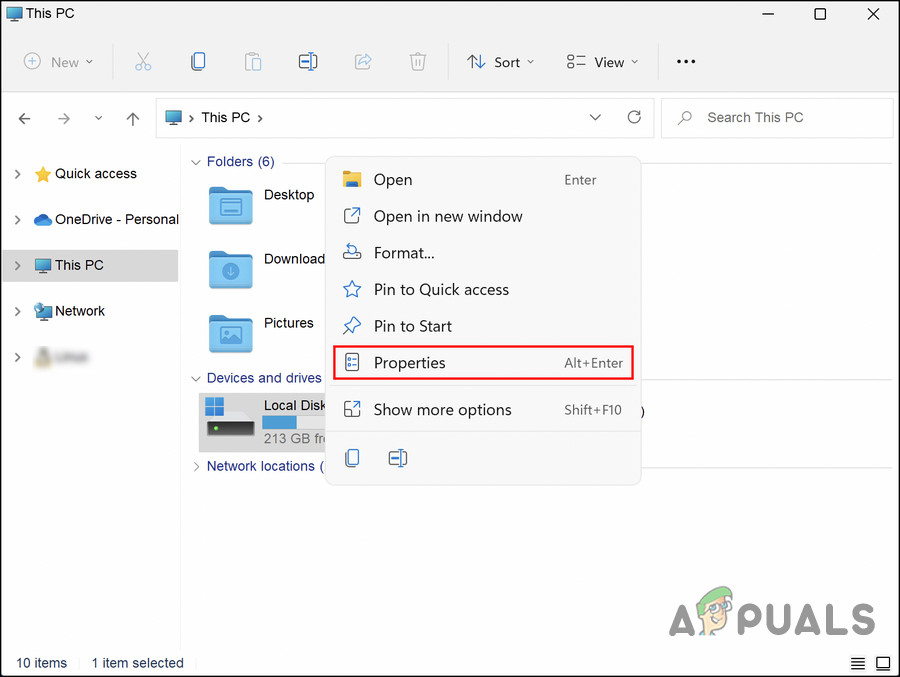- Right-click on the targeted drive and choose Properties from the context menu.