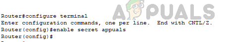 Router#configure terminal Router#enable secret appuals