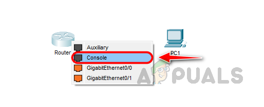 - Click on the router, then select the console option.