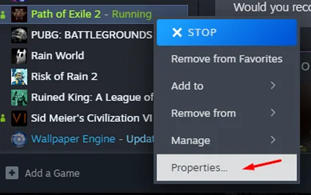 - In your Library, right-click Path of Exile 2 and select Properties.