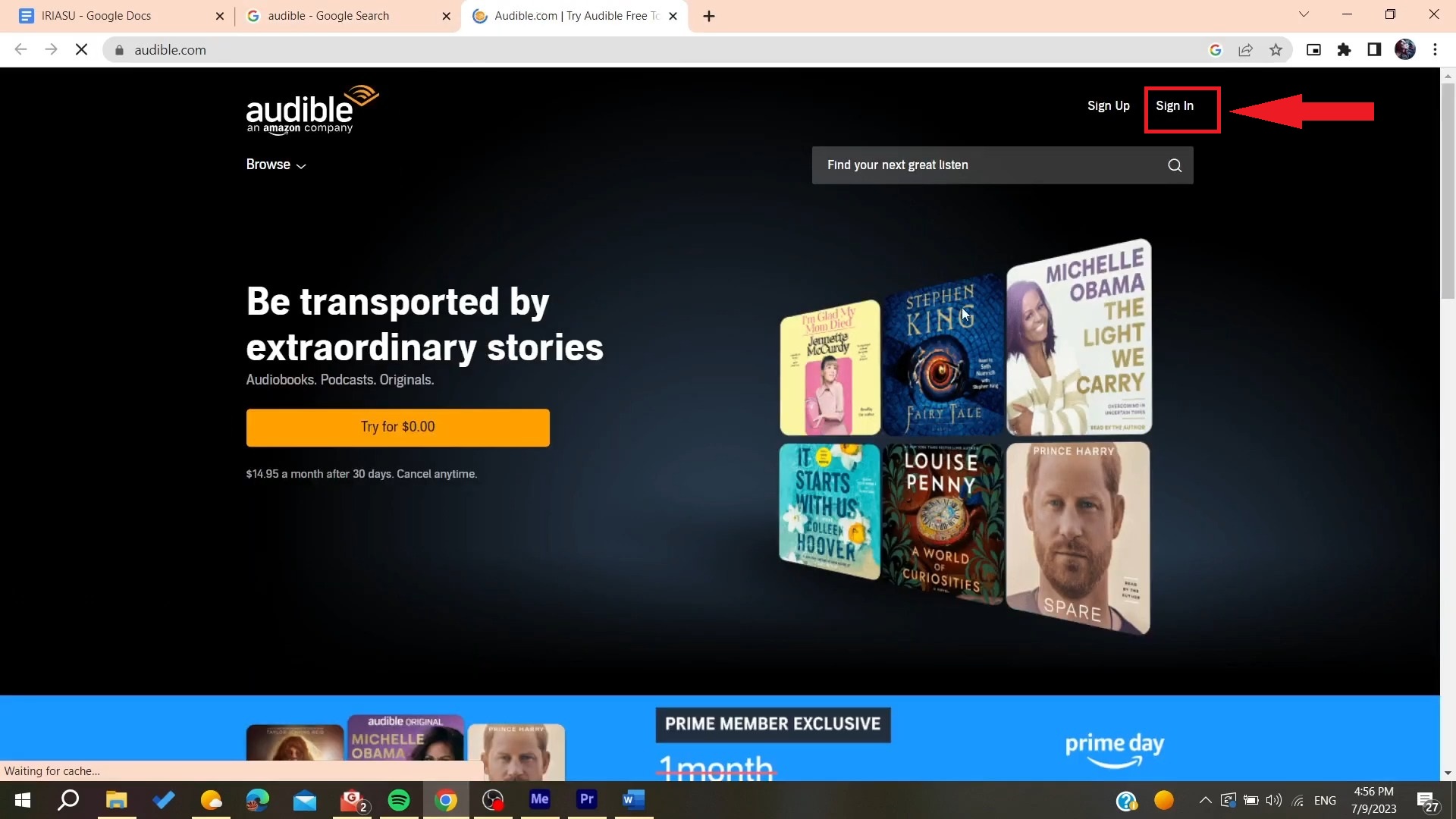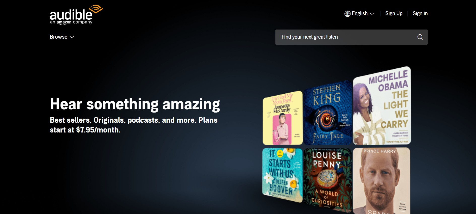 Navigate to Audible’s official website and log into your account by selecting the Sign-in option located at the top right.