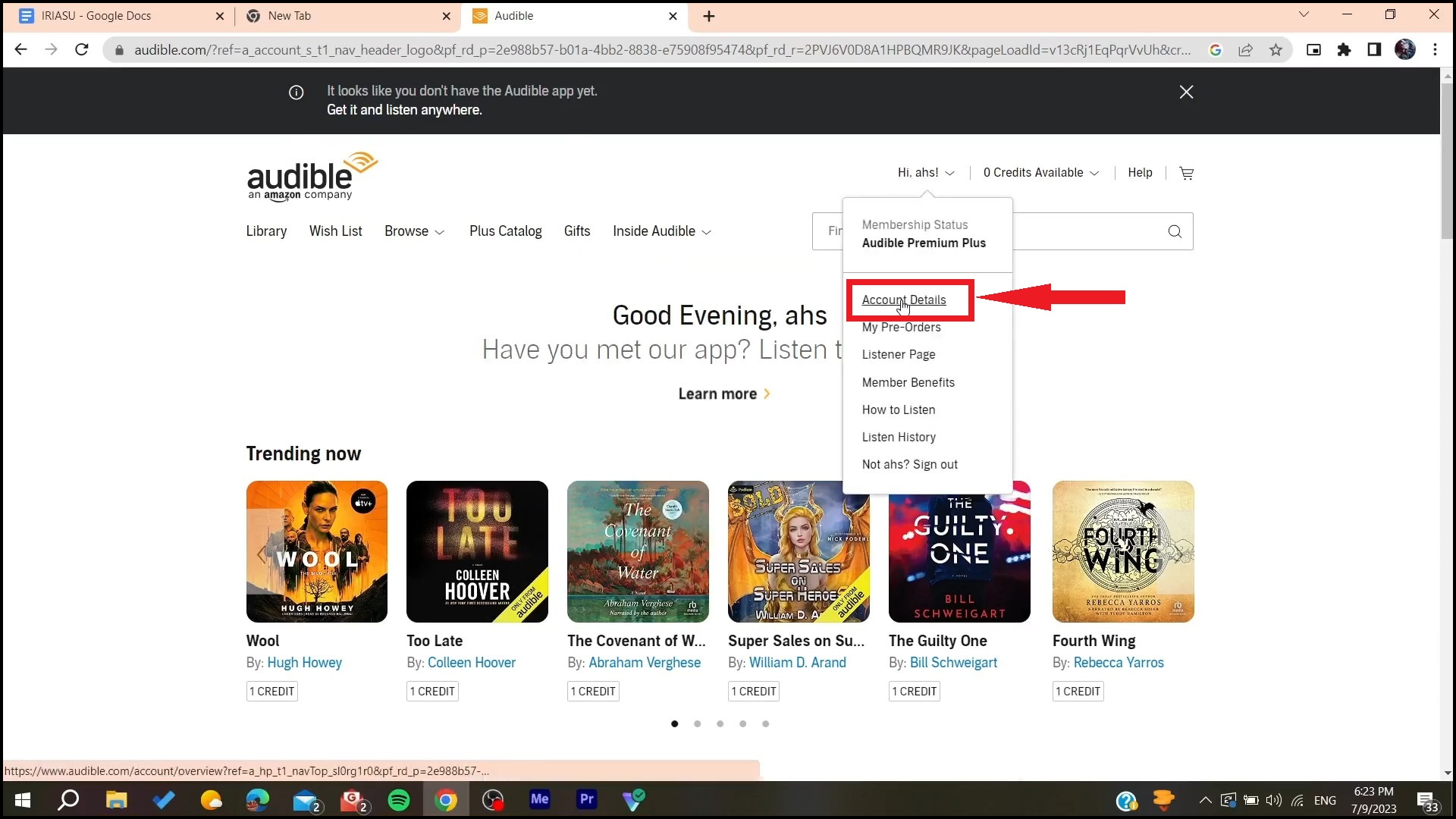 - Sign in to your Audible account on the website. Navigate to the “Account Details” page.