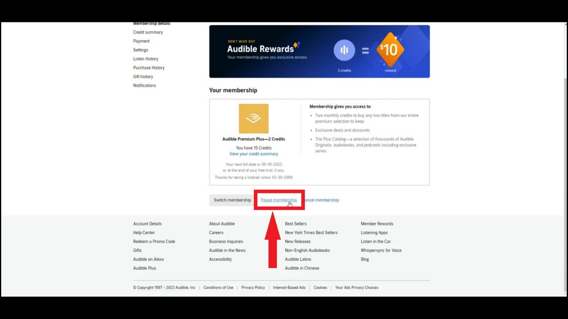 Confirm your decision to pause your membership. Audible will send a confirmation email once the process is complete.