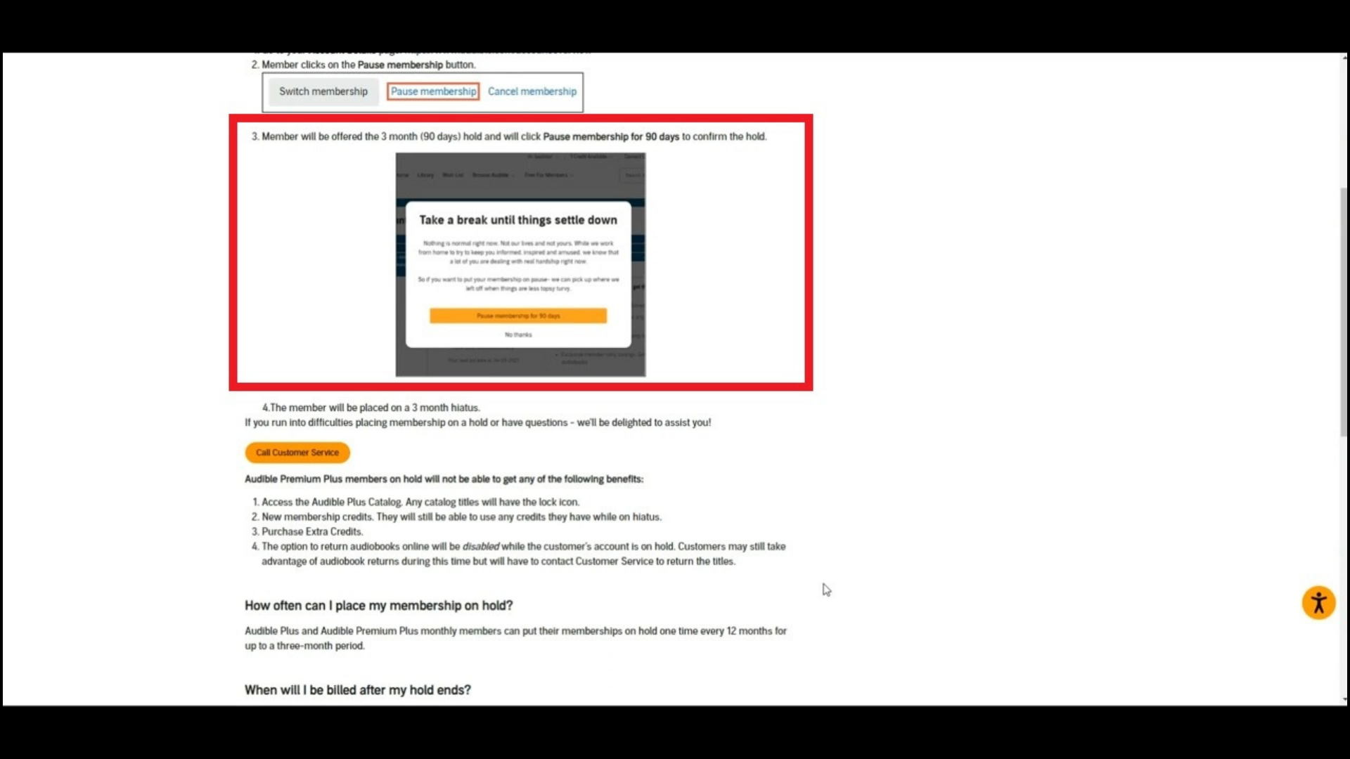 Should you encounter any challenges, such as an error message, reach out to Audible’s customer service for assistance. This issue might arise if you have already paused your membership within the past 15 months and are not yet eligible to pause again.