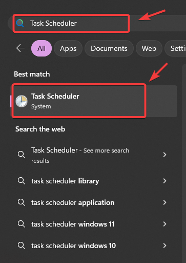 - Click the Start Menu, search for Task Scheduler, and open it on your Windows.