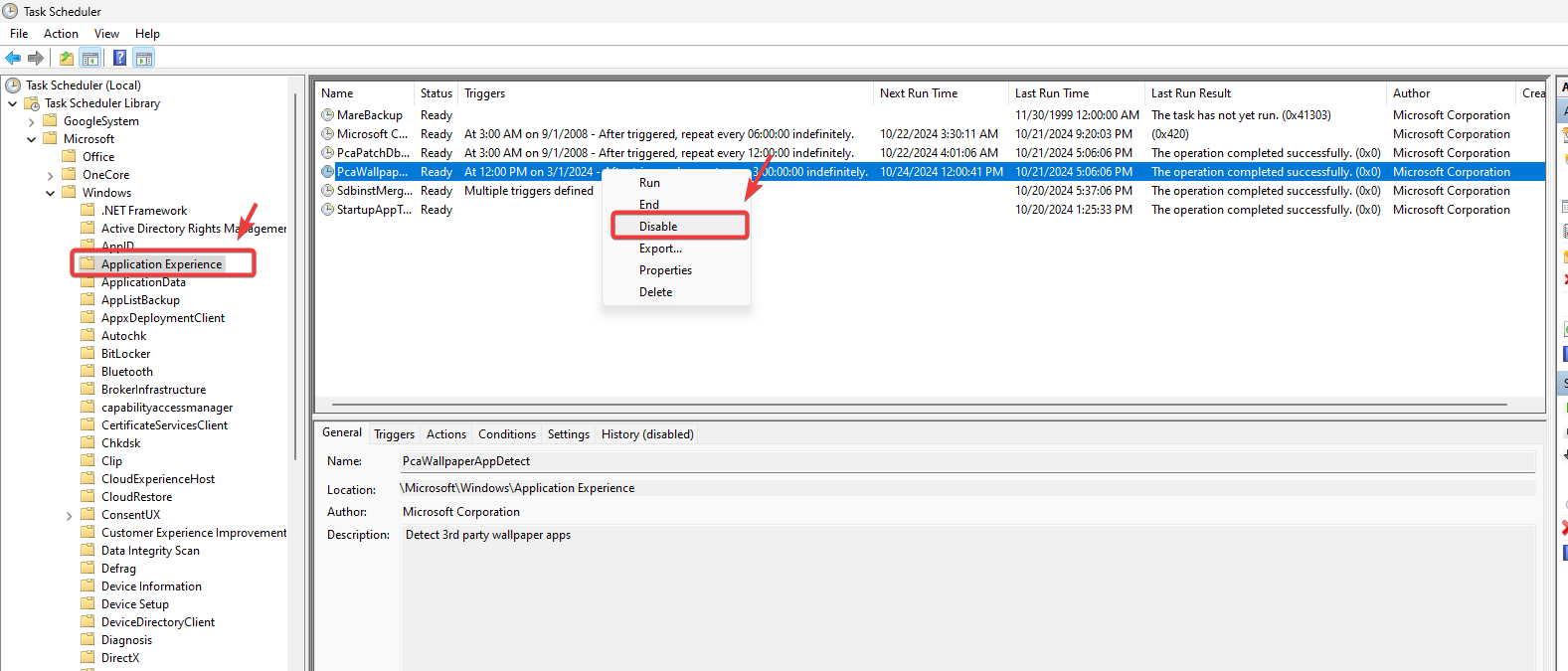 As mentioned earlier, the PcaWallpaperAppDetect task in the Windows Task Scheduler keeps calling an entry point that no longer exists, resulting in this error. To fix this, we can disable the PcaWallpaperAppDetect task from the Windows Task Scheduler.
