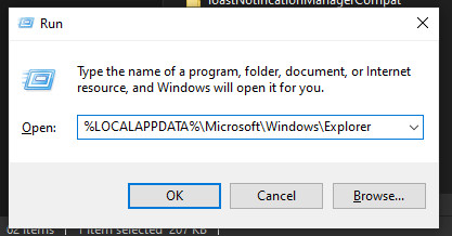 %LOCALAPPDATA%\Microsoft\Windows\Explorer, and press Enter.
