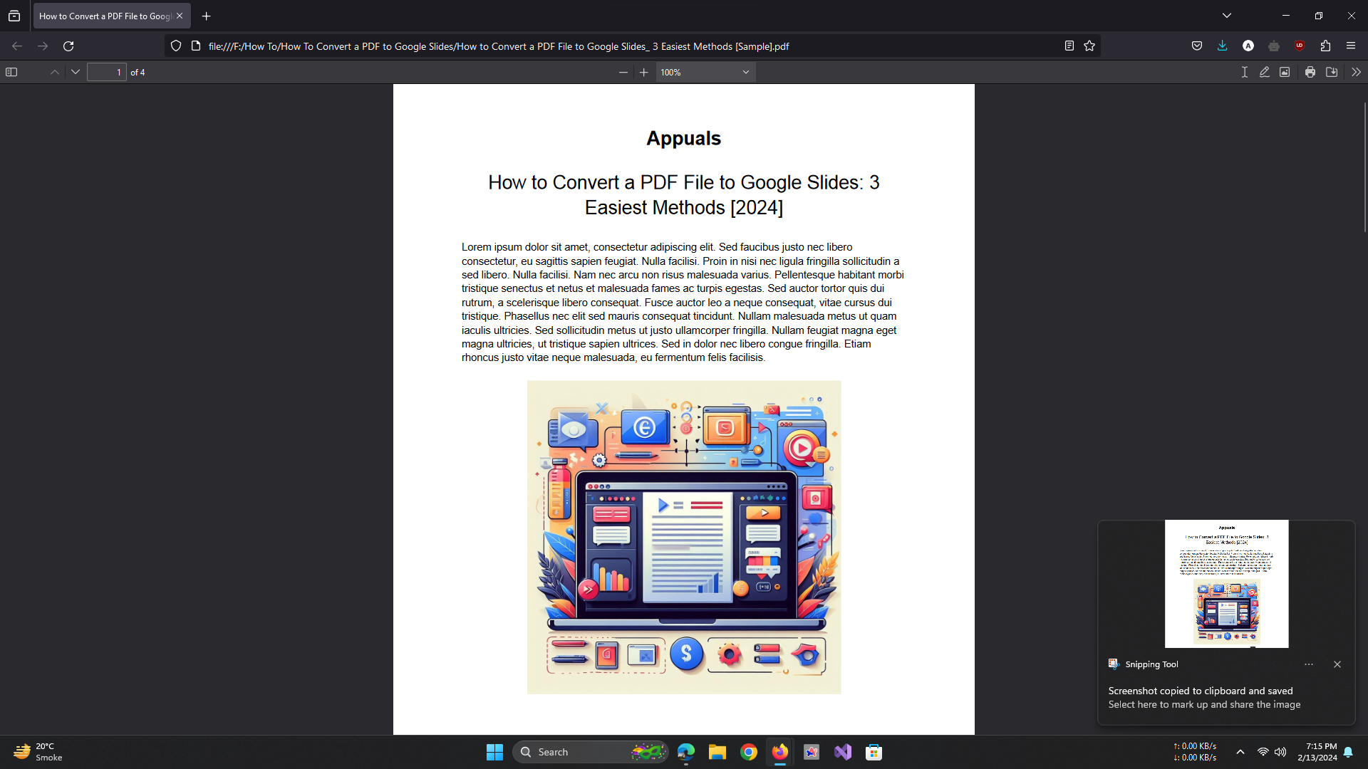 While this one may require more effort than the previous two, it will surely get the job done. So without further ado, let’s discuss how you can convert your PDF file to Google Slides by simply taking screenshots of the PDF.