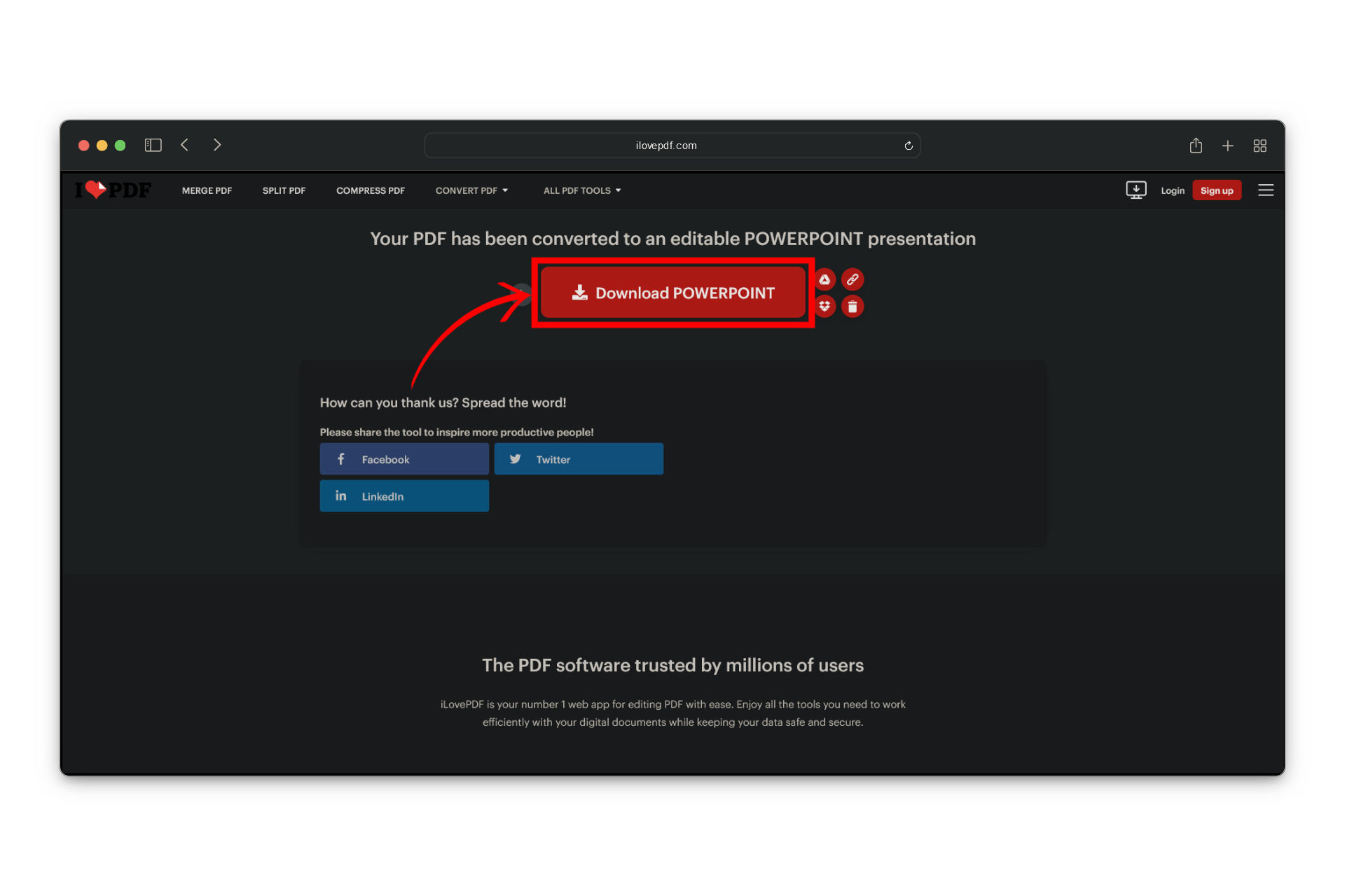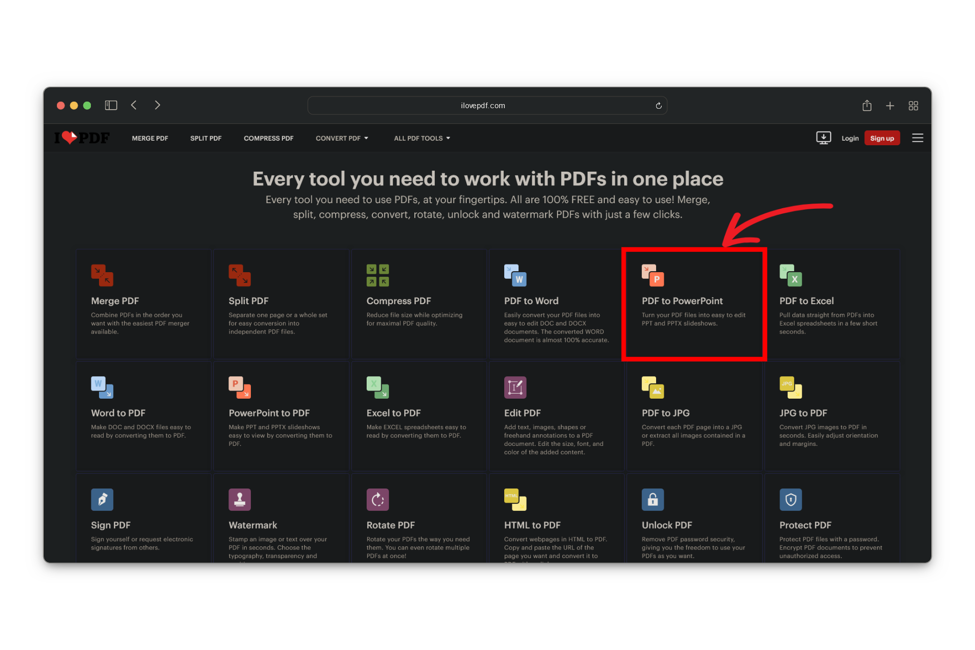 Go to iLovePDF - Click the PDF to PowerPoint converter on the website.