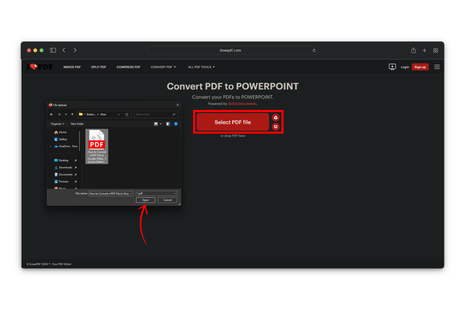 Select PDF to PPTX Converter - Then, click the “Select PDF file” button to upload the PDF you wish to convert. Alternatively, you can drag and drop the file directly onto the webpage.
