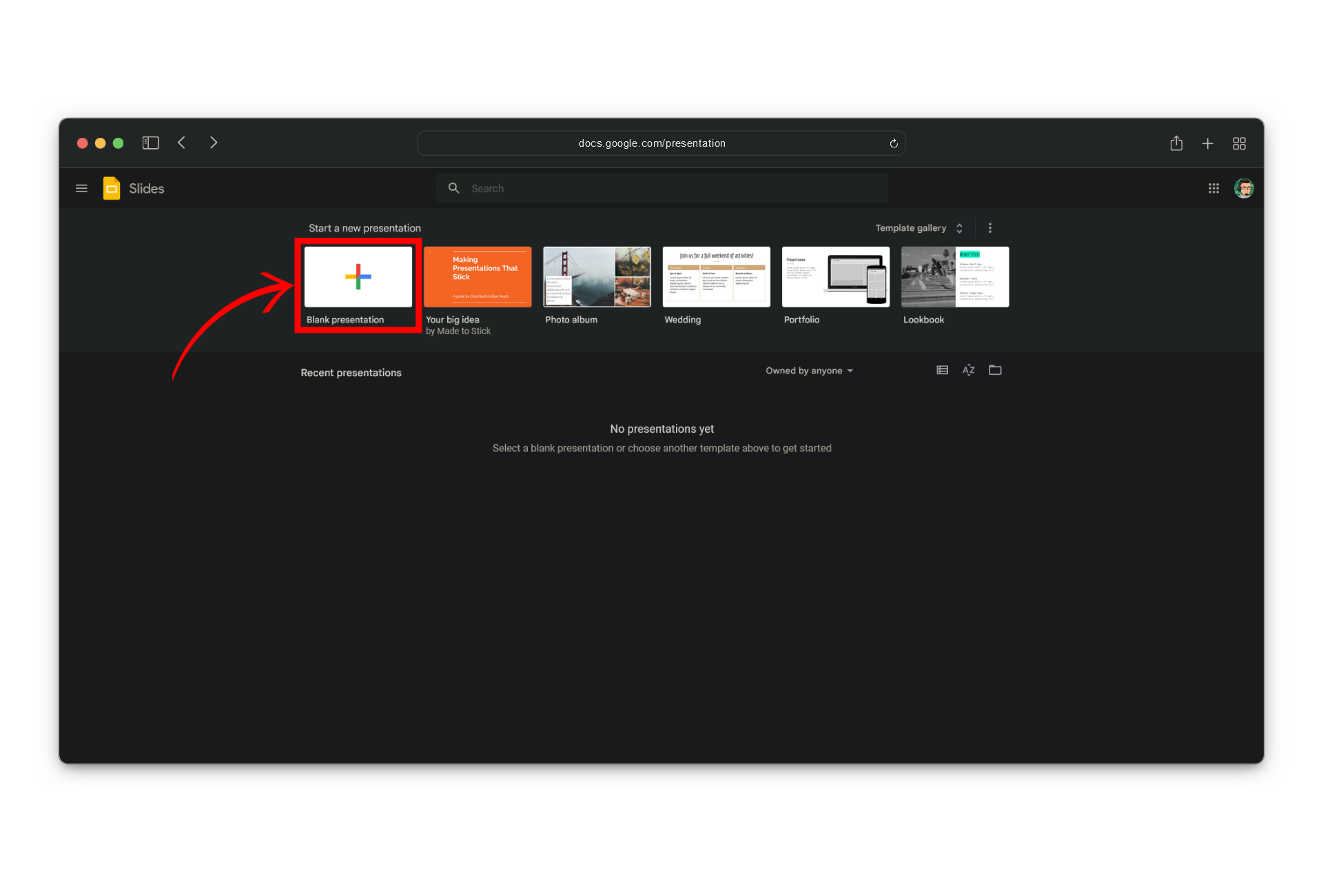 - Now, go to Google Slides and create a blank presentation.