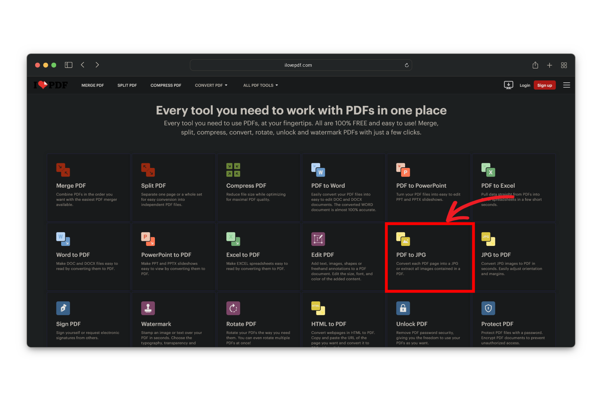 Go to iLovePDF - Click on the “PDF to JPG” converter on the website.