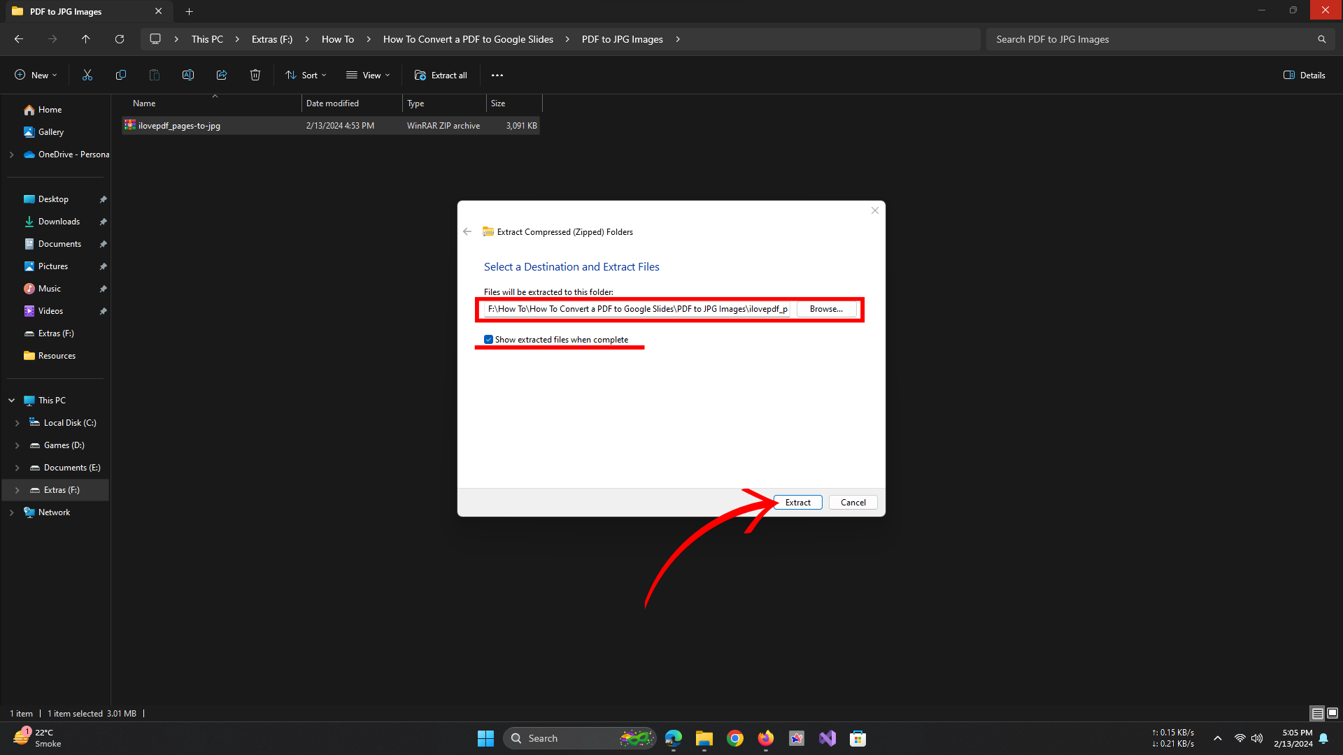Click Extract - Once the extraction is done, you can open the folder and view the images.