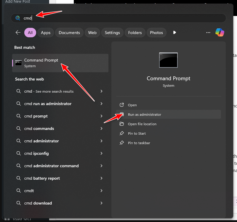 - Launch Command Prompt as an administrator by searching for it in the search bar.