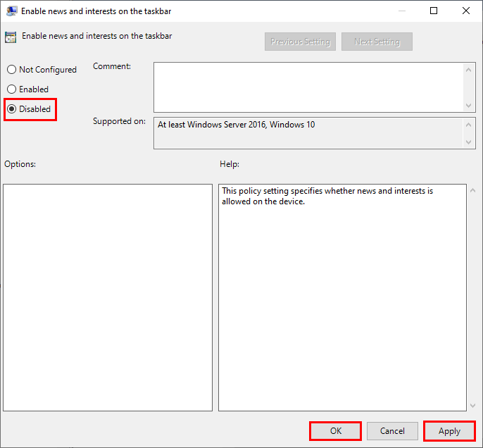 - Set it to Disabled, then click Apply and OK.